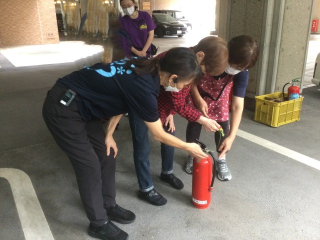 入居者様と一緒に消火訓練です。