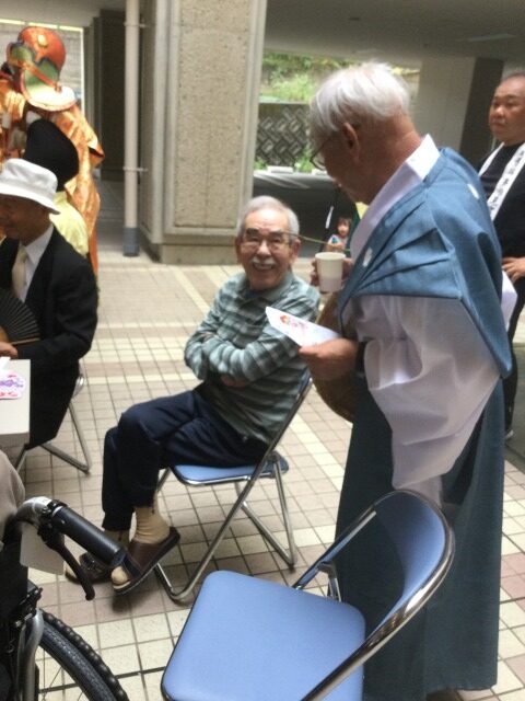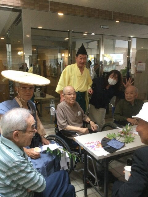 5年に一度の祭事、神幸行列が10年ぶりに開催され、13区の皆様の交通安全・無病息災を願いつつお祓いをしながら練り歩く神事が行われました。ケアハウスでは、日頃お世話になっている地域の皆様との交流を持たせて頂けると伺い、入居者様と一緒に貴重な経験をさせて頂きました。