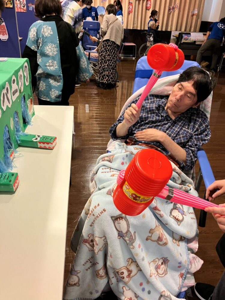 2月某日、特別養護老人ホームでは各フロアで節分会を行いました。