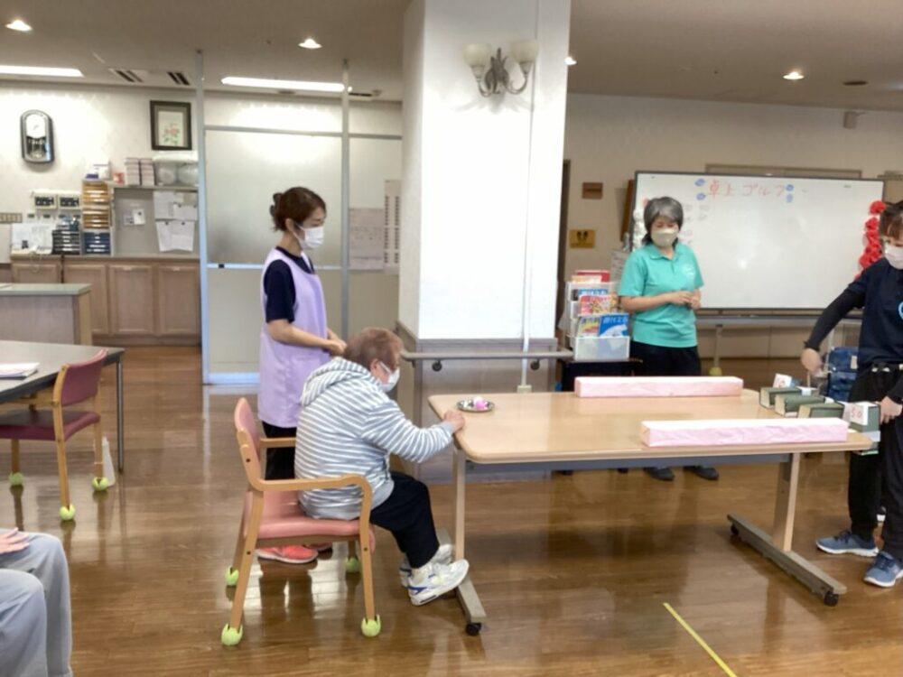 机の上でゴルフを楽しみました。